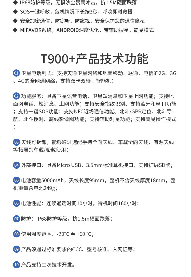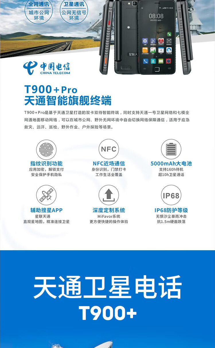 商品名称:星联天通 T900+ PRO 卫星电话天通网络4G智能手机北斗定位导航终端(含1年语音套餐)