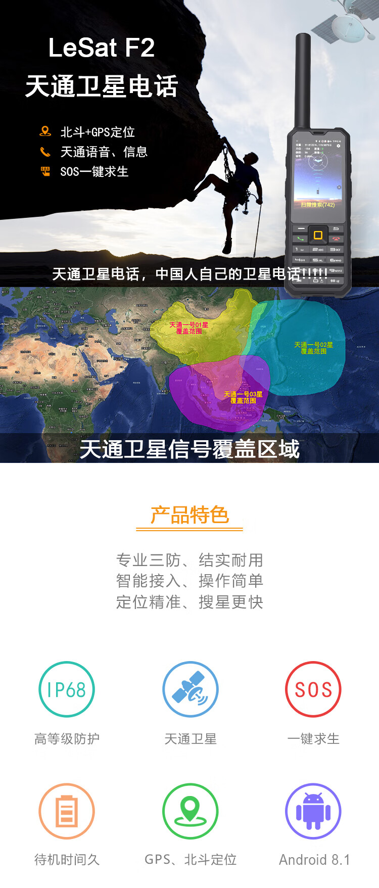 商品名称:天通一号卫星电话乐众LeSat F2卫星电话手持GPS+北斗定位户外三防手机应急